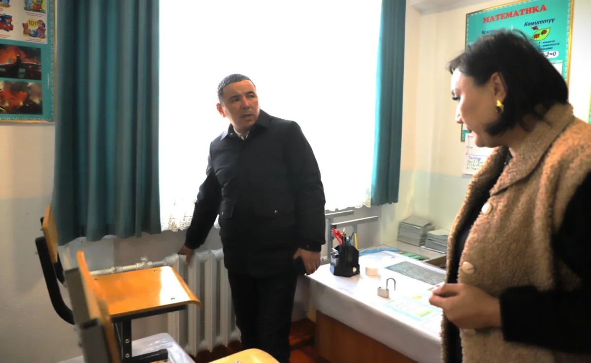 Талас шаарынын мэри Нургазы Асылбеков №1 Абжалбек Чолпонкулов атындагы орто мектепке барып, жылытуу системасындагы көйгөйдү жеринен көрдү.