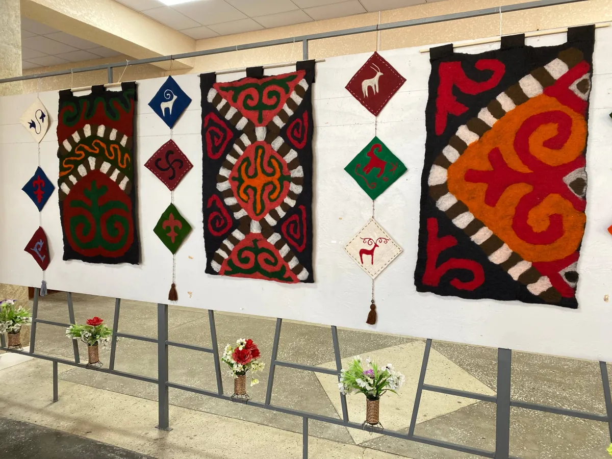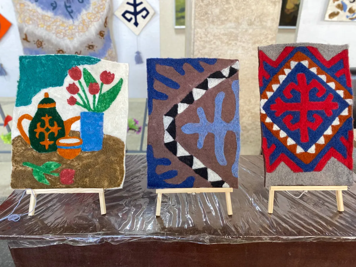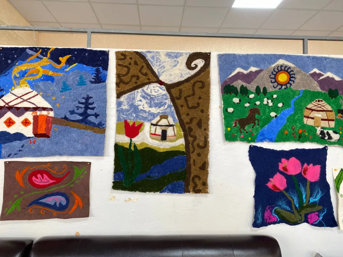 Көргөзмөдө Жазмира Давлеталиеванын кол эмгектери элдин назарына коюлду.